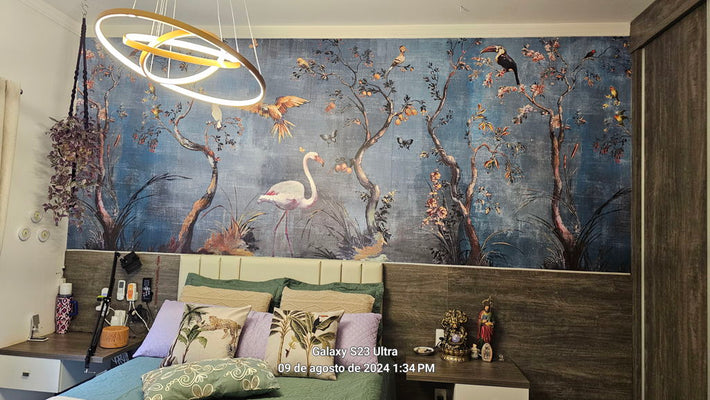 Papel de Parede Chinoiserie Jardim Exótico Radiante