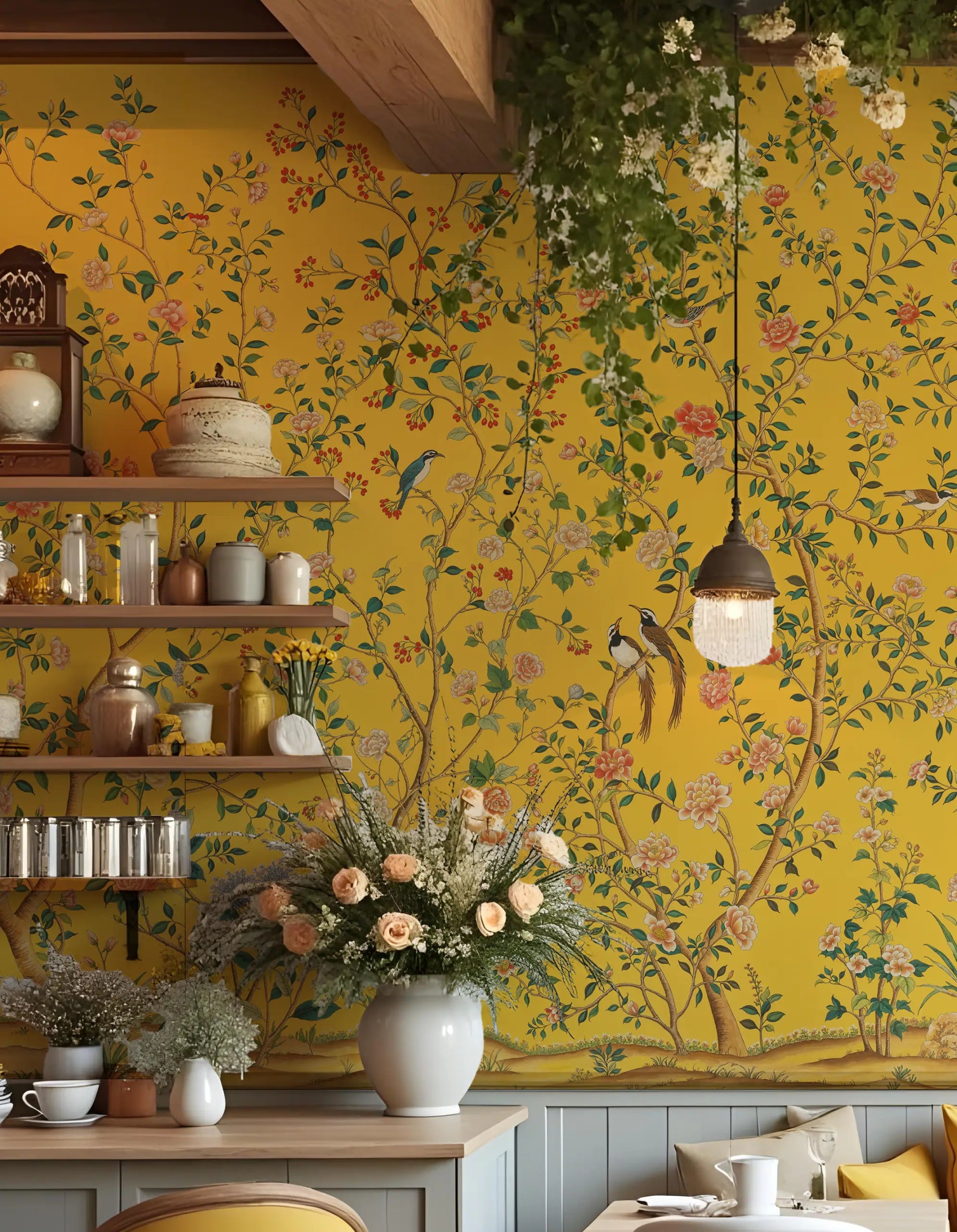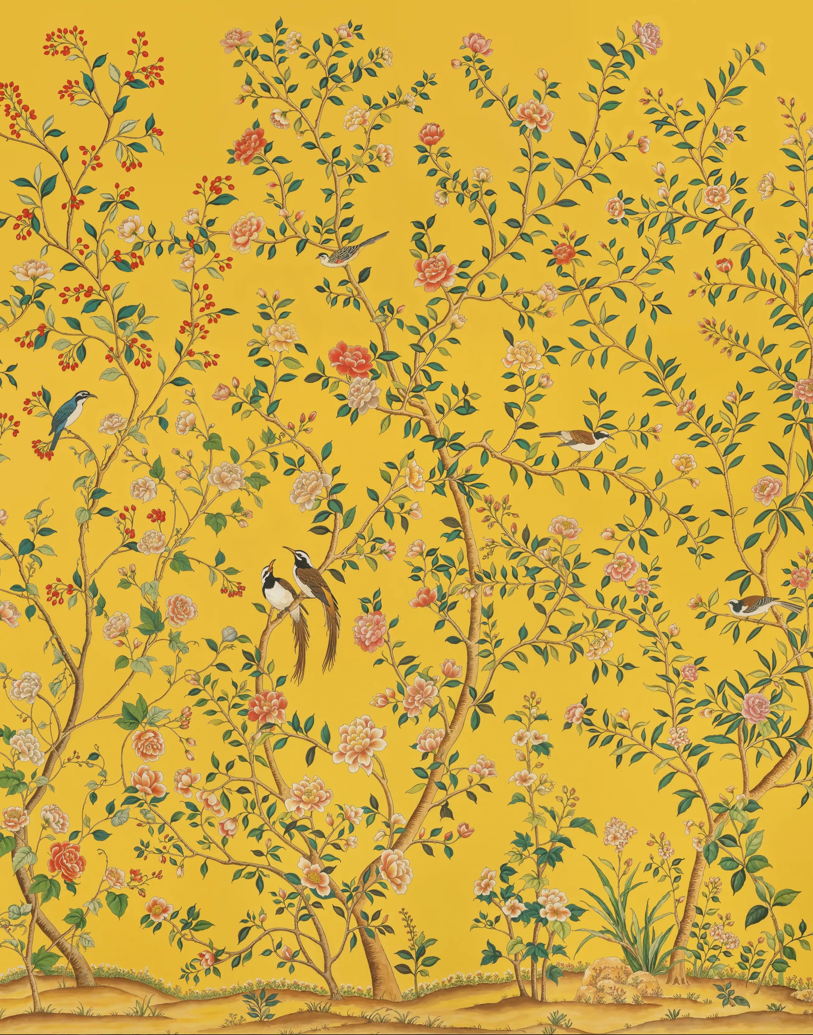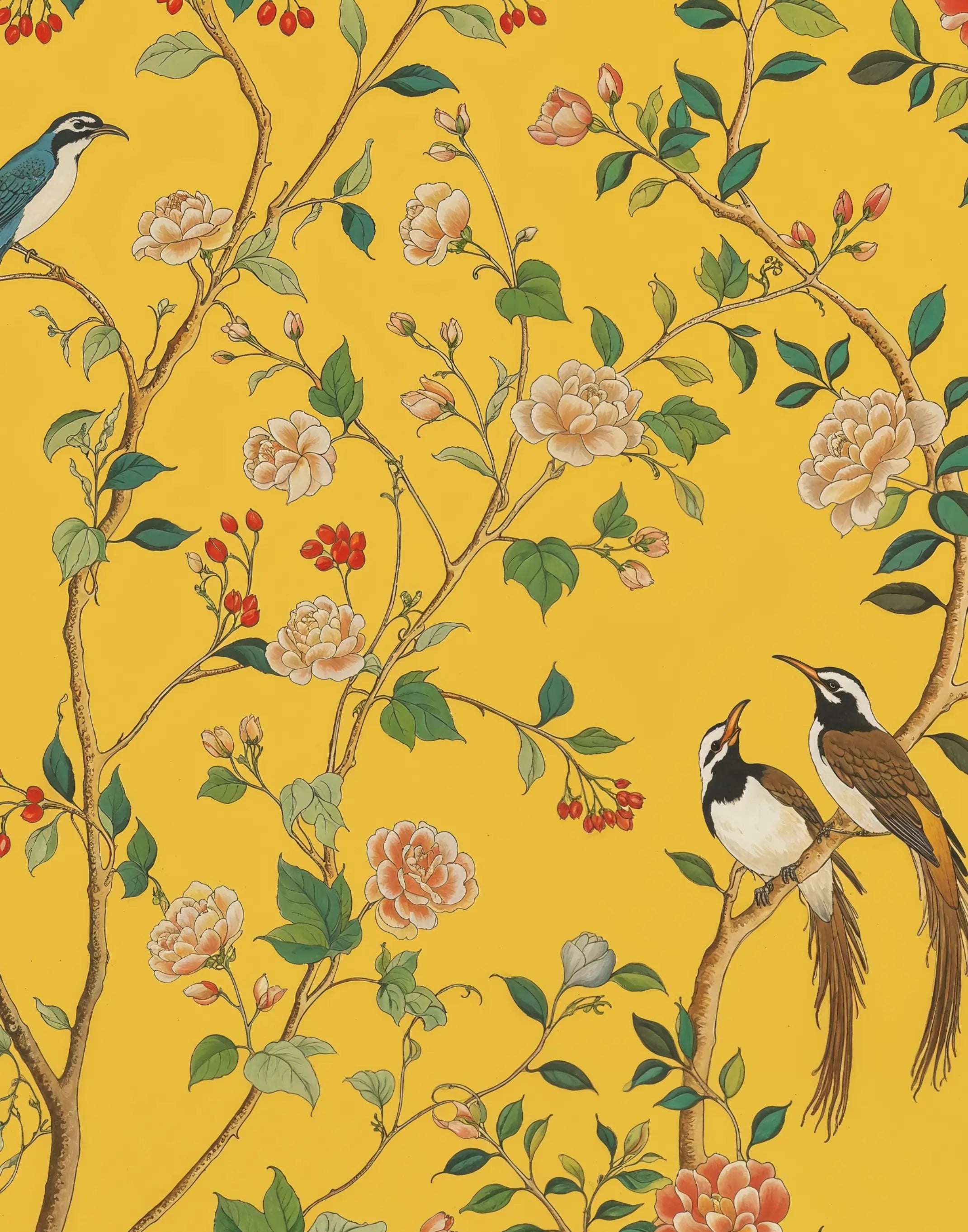 Papel de Parede Chinoiserie Jardim Exótico Radiante