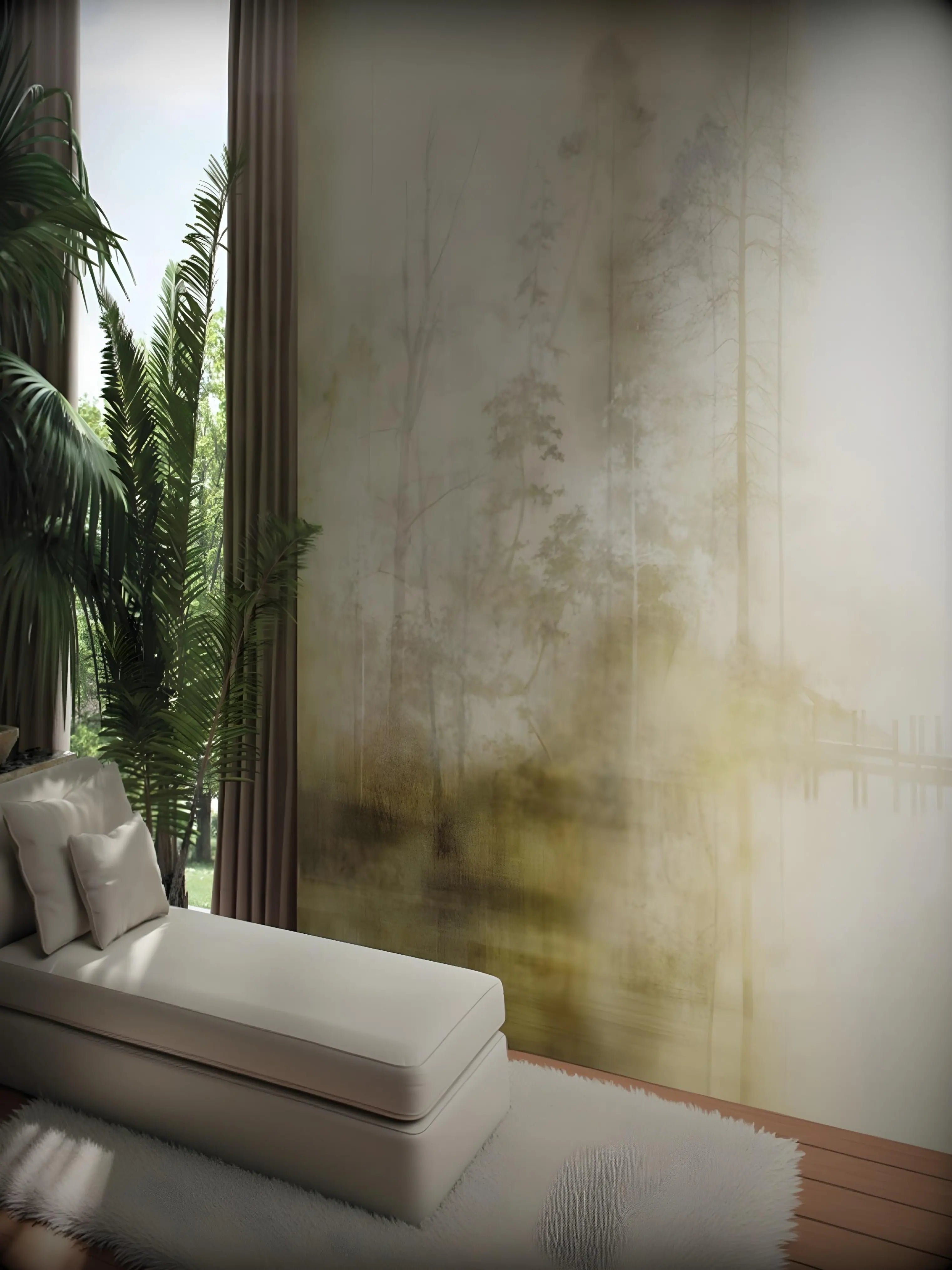 Com uma paisagem fotográfica que retrata um lago calmo cercado por uma densa floresta, este papel de parede transmite serenidade e conexão com a natureza. A paleta de verdes e tons terrosos traz frescor e equilíbrio visual ao ambiente. A composição naturalista cria uma ilusão de profundidade, ideal para ampliar espaços e transformar paredes em verdadeiras janelas para o exterior. A textura em relevo agrega sofisticação ao toque, fazendo deste mural uma escolha perfeita para quartos, salas ou espaços de descanso.