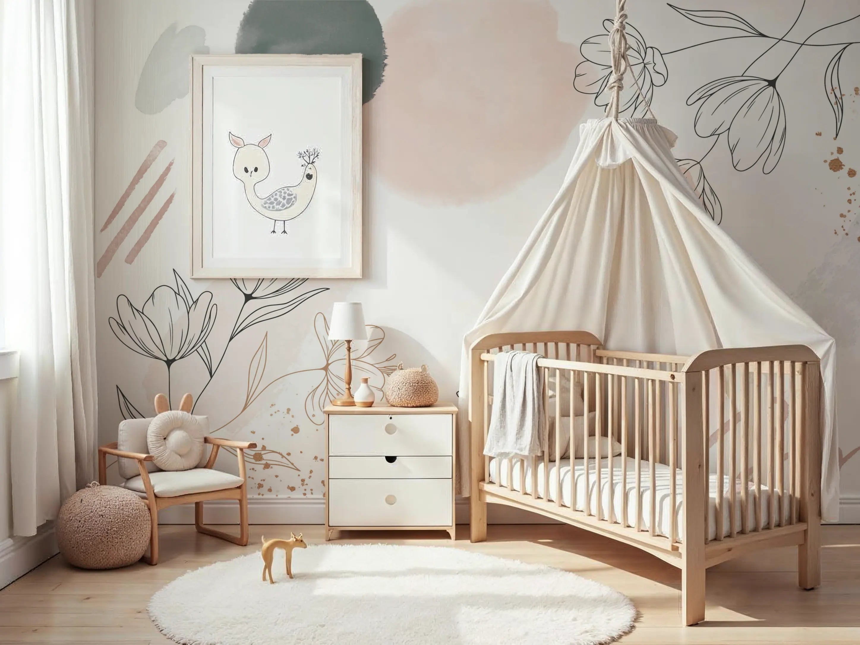 A delicadeza floral transforma este quarto de bebê em um refúgio de paz. Destaque para o elegante mural de parede com traços suaves em tons neutros, criando uma atmosfera acolhedora e estimulante para o desenvolvimento do seu pequeno. Um toque de arte e personalidade para o espaço infantil com a qualidade dos murais e papéis de parede personalizados ADcorista.