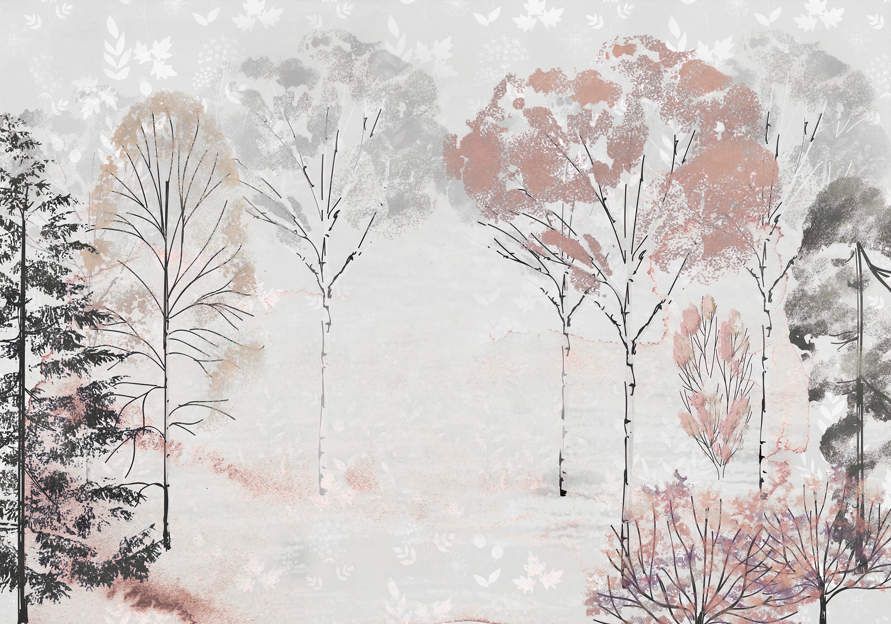 Traga a natureza para dentro de casa com este papel de parede vibrante. A floresta exuberante e os traços de pintura criam um ambiente acolhedor e fresco.