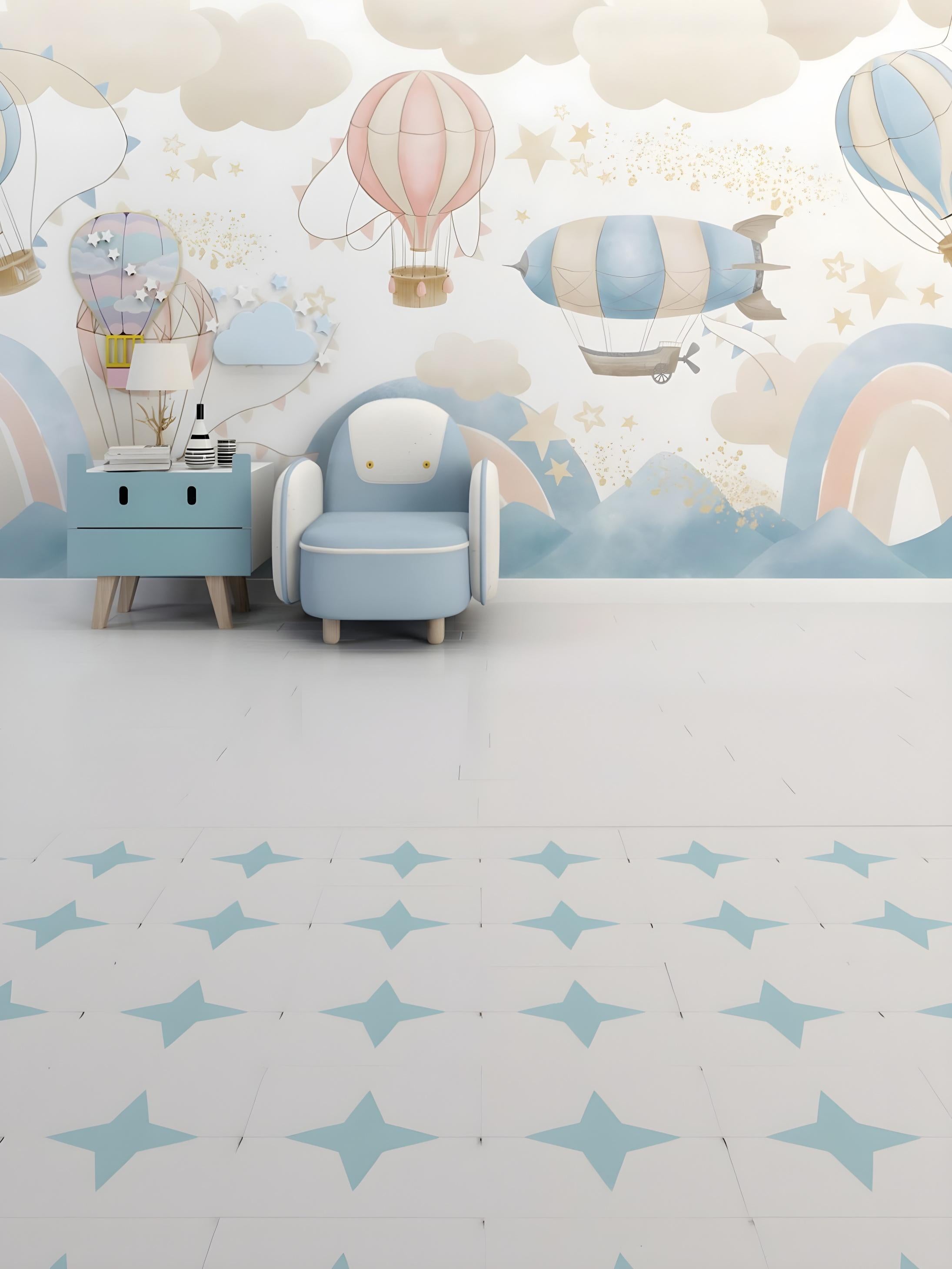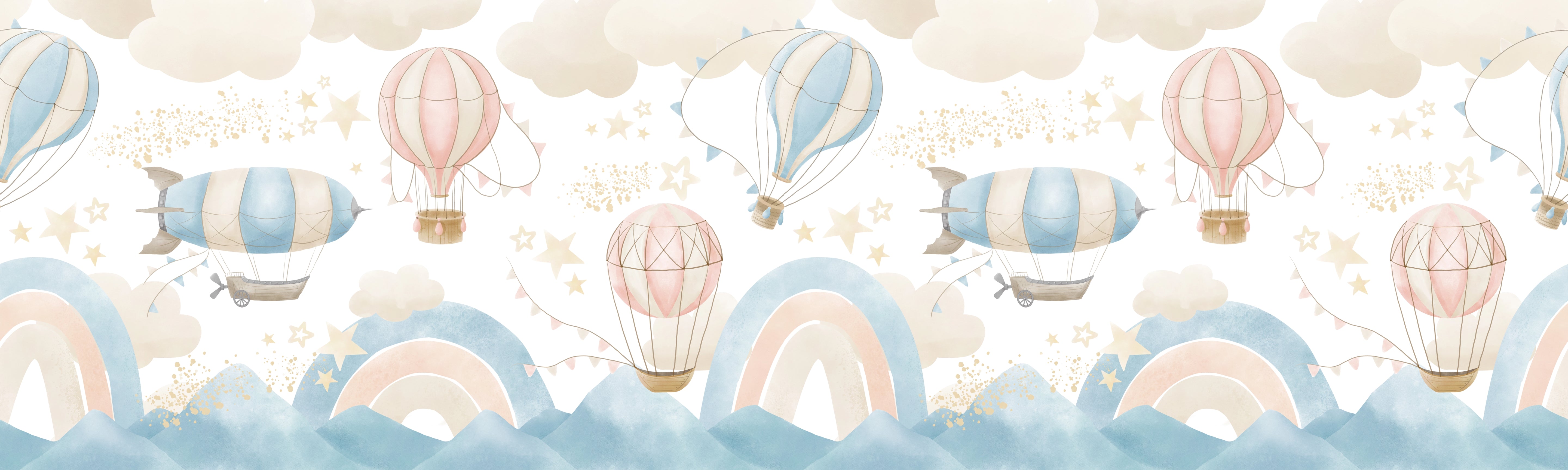 Transforme o quarto das crianças em um mundo de alegria e imaginação com este mural vibrante. Os balões coloridos e o design lúdico, com traços alegres e texturas suaves, criam um ambiente encantador.