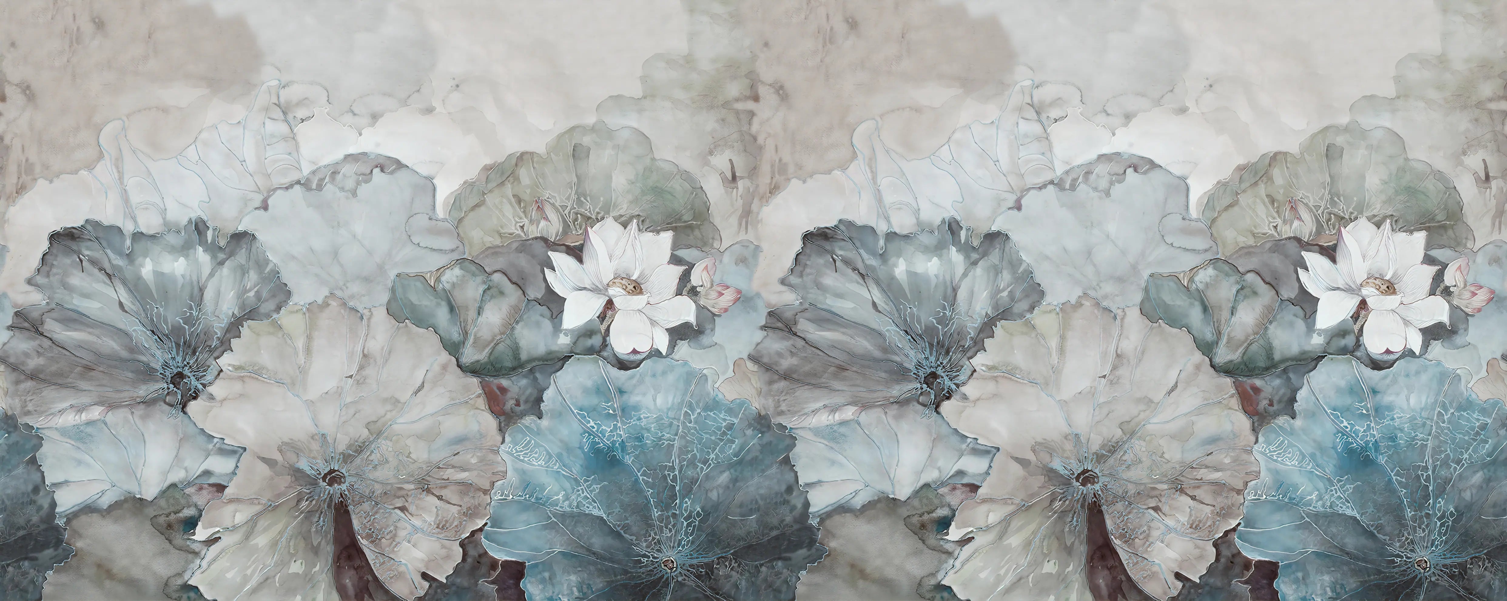 Este papel de parede apresenta um design floral em grande escala, combinando a beleza das flores com uma estética contemporânea. As cores e formas criam um ambiente elegante e moderno.