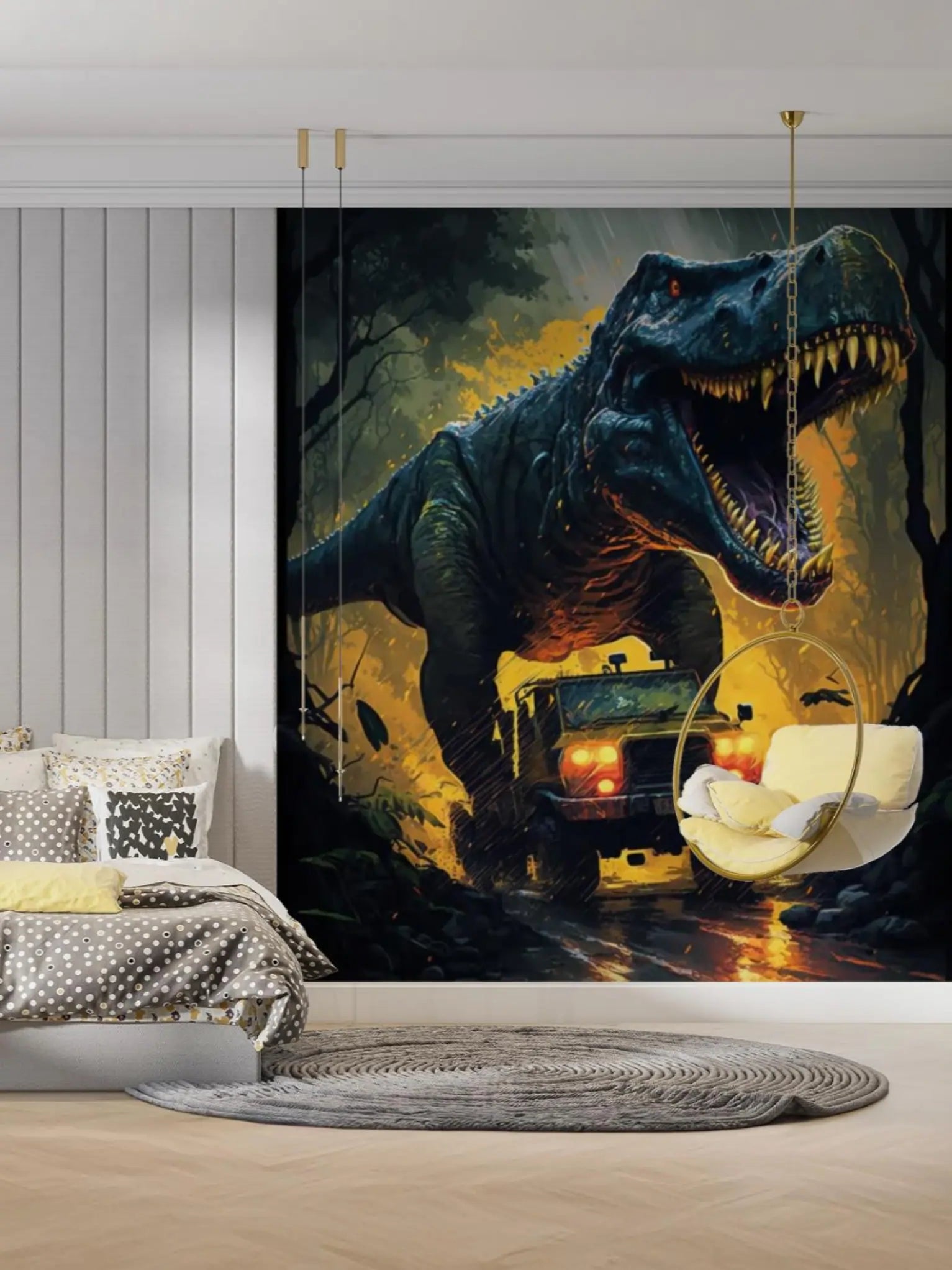 Transforme o quarto das crianças em um mundo jurássico com este papel de parede vibrante e encantador. O design ilustrativo apresenta diversas espécies de dinossauros em cores alegres, como verde, azul, laranja e amarelo, cercadas por elementos naturais como árvores, vulcões e vegetação típica da era pré-histórica. A composição cria uma atmosfera divertida, estimulante e educativa, ideal para estimular a imaginação dos pequenos. O estilo artístico, com traços de ilustração infantil, combina perfeitamente com ambientes lúdicos como quartos, salas de brincar ou espaços de aprendizagem. Produzido em material autocolante texturizado, é fácil de aplicar e oferece excelente durabilidade.
