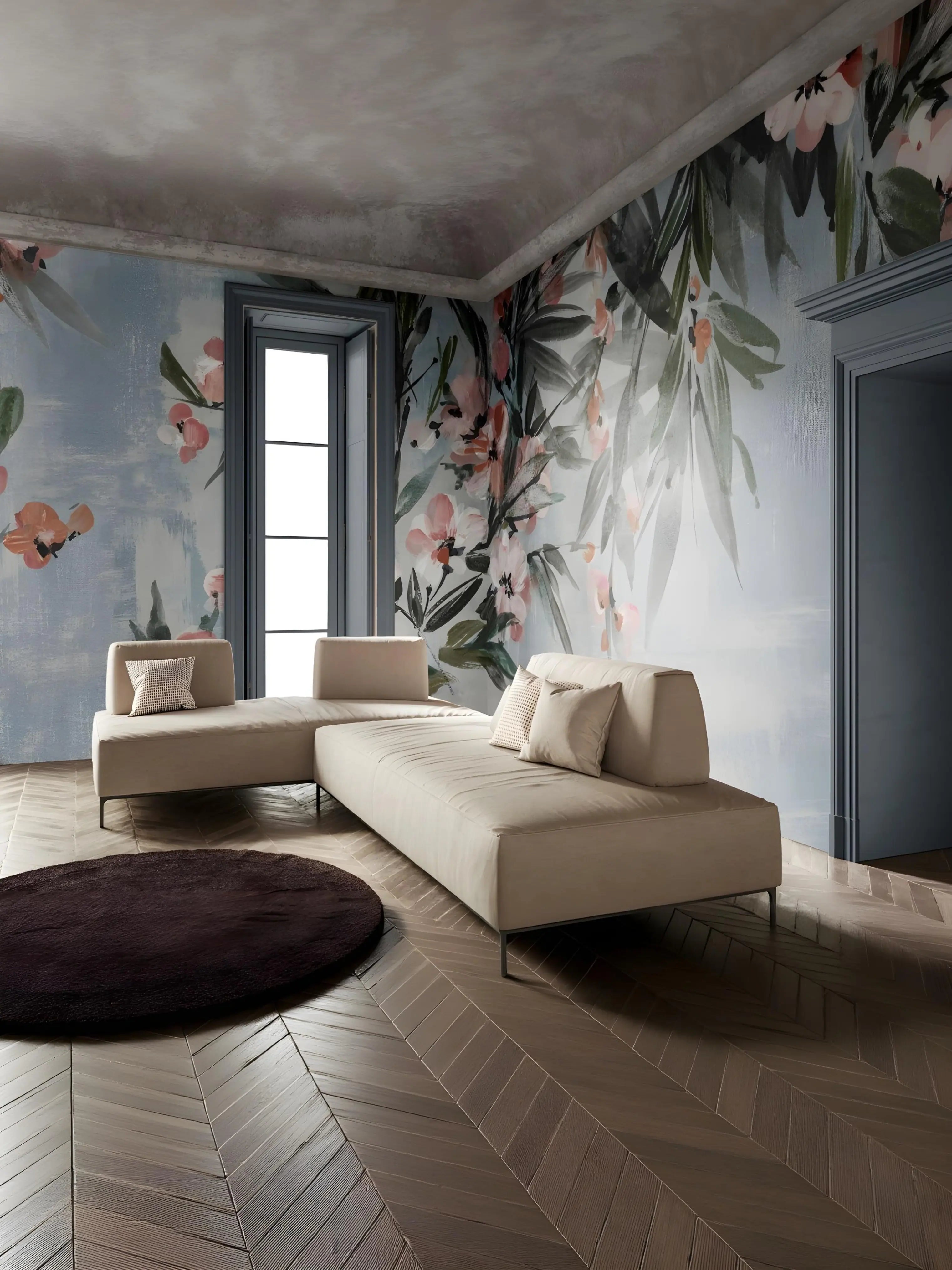 Este papel de parede floral grande traz uma composição delicada de flores em tons suaves de rosa e pastel, com um efeito aquarela que confere suavidade e elegância ao ambiente. A estampa exuberante, que se espalha por toda a parede, cria uma atmosfera relaxante e charmosa, perfeita para salas de estar ou quartos que buscam um toque de frescor e tranquilidade