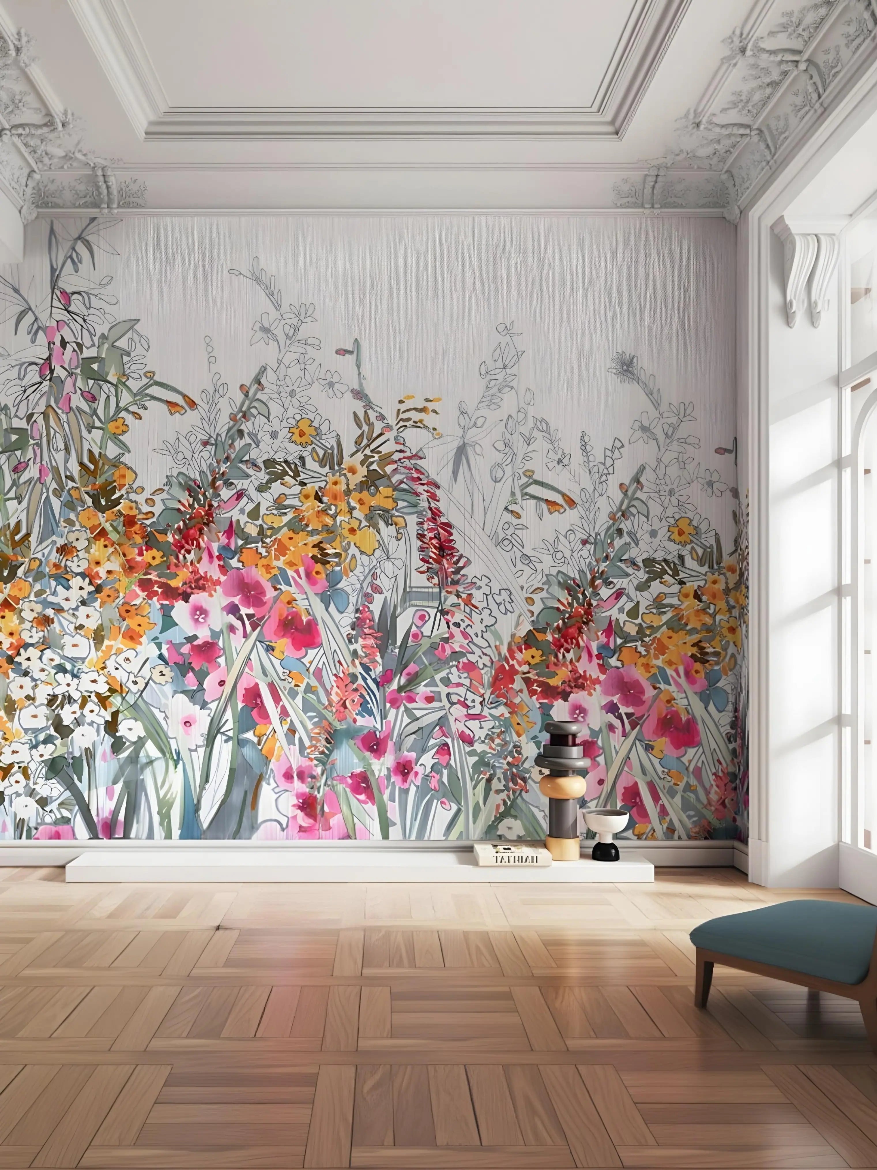 Transforme suas paredes com a leveza poética deste papel de parede que apresenta flores flutuantes em tons suaves, criando a ilusão de que estão caindo ou subindo. O fundo claro valoriza o movimento sutil das flores, tornando o ambiente mais delicado, arejado e acolhedor. É perfeito para quartos femininos, salas elegantes ou espaços de relaxamento, trazendo uma atmosfera romântica e etérea.