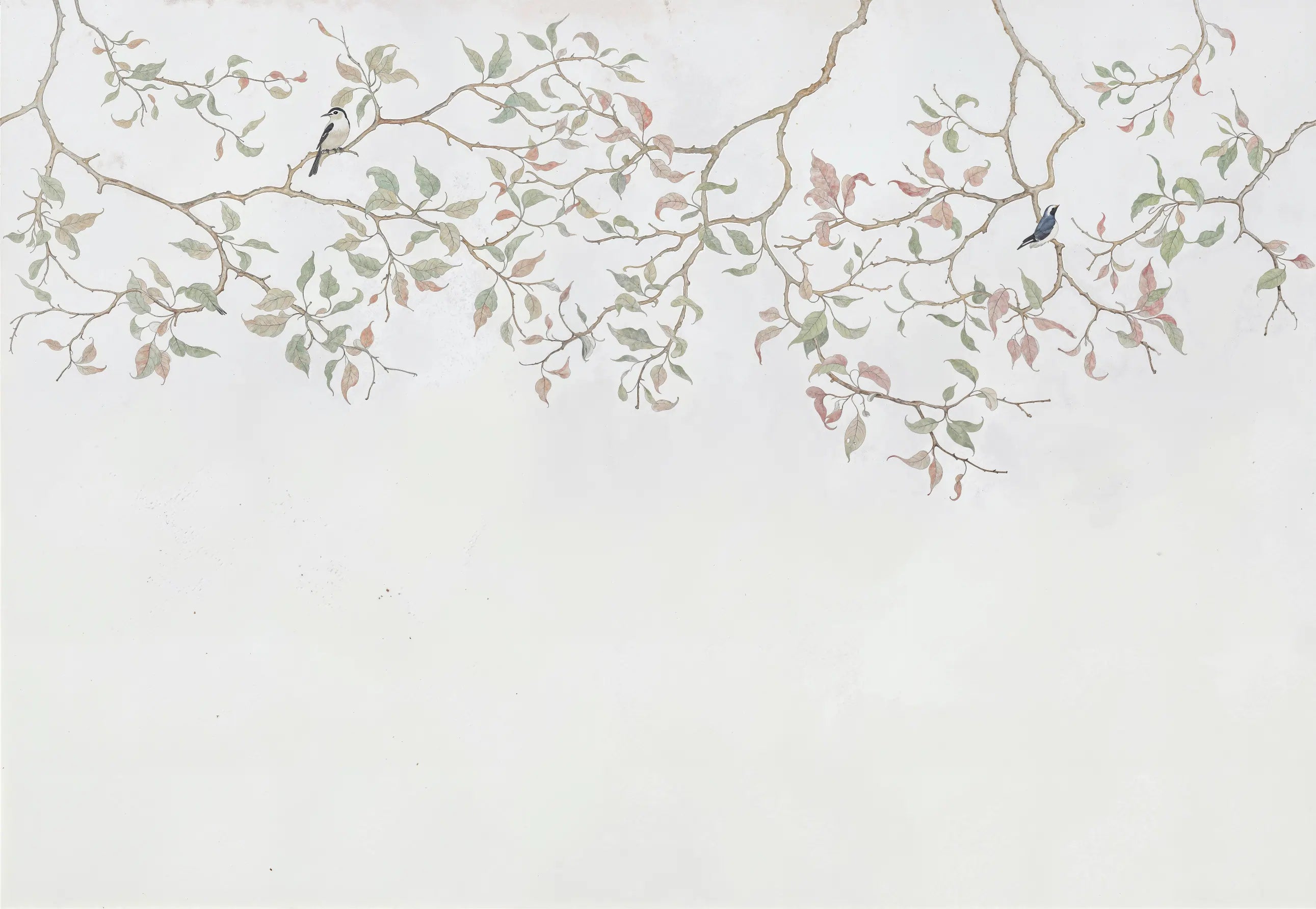 Papel de Parede Galhos Delicados Pássaros Suaves