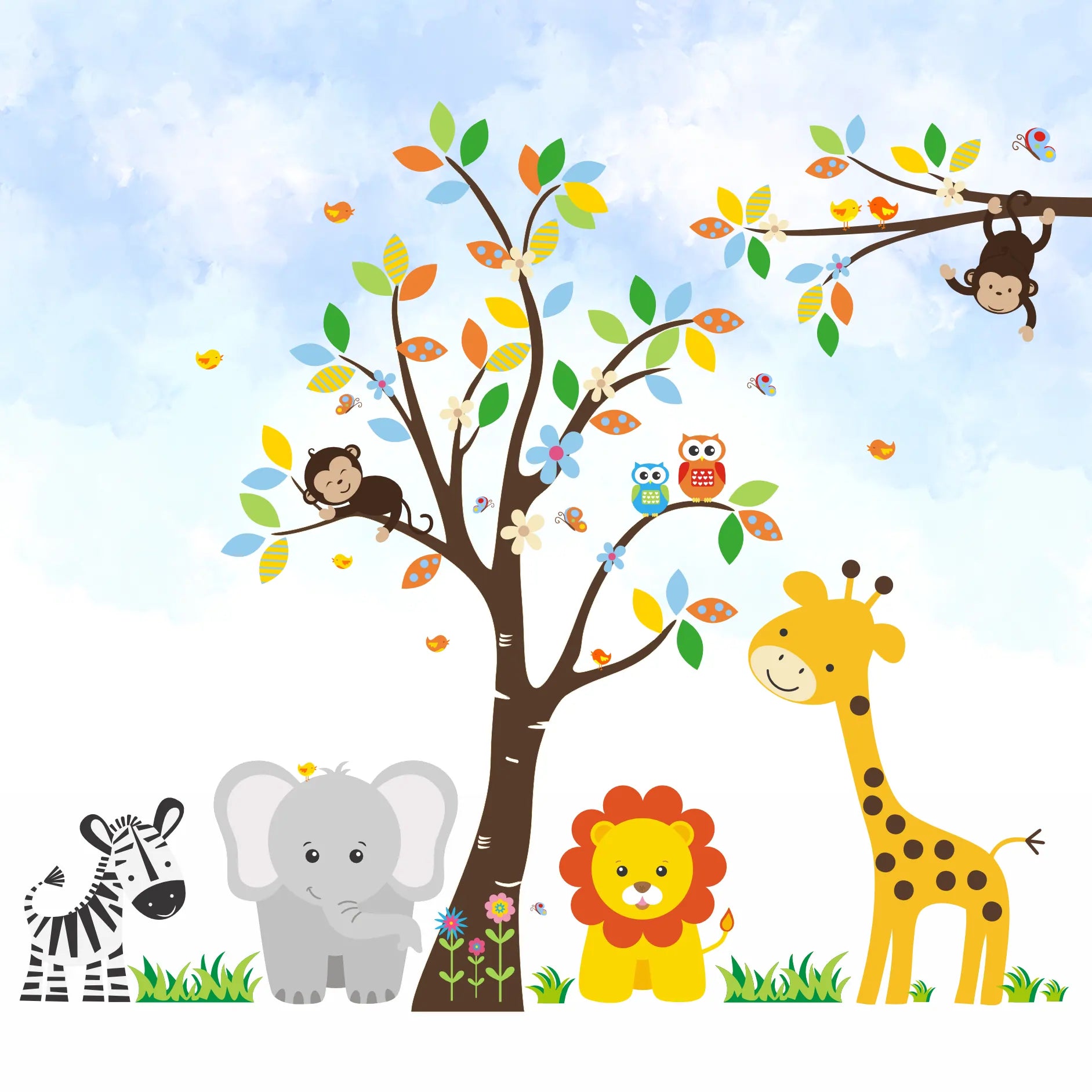 Papel de Parede Safari Árvore Animais Infantil