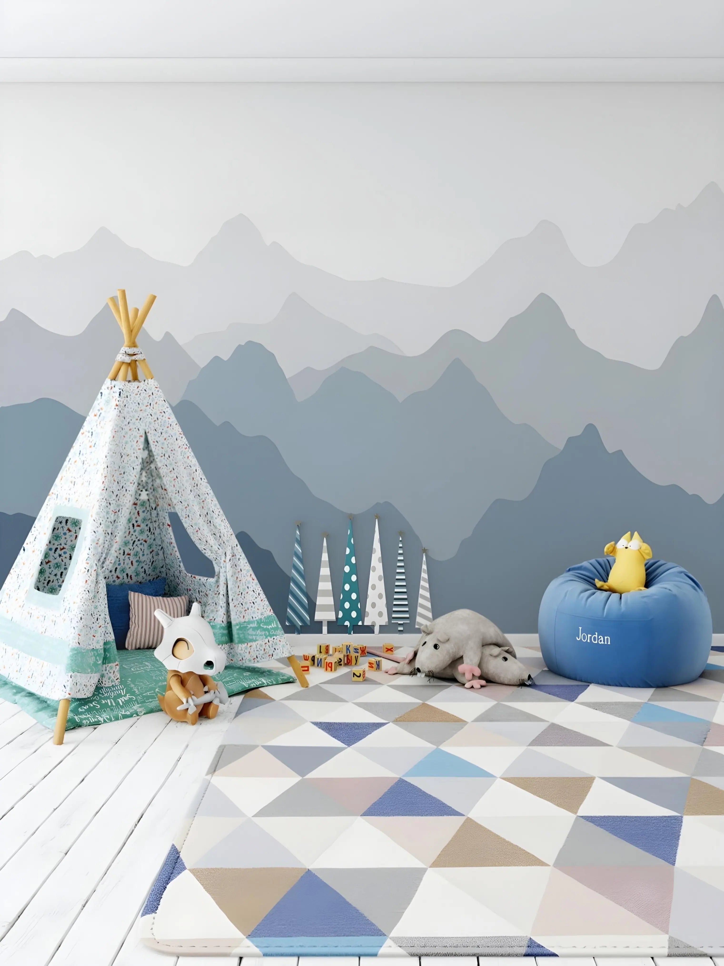 Este papel de parede apresenta um design artístico em camadas de montanhas estilizadas, com tons suaves de cinza, bege e creme que evocam serenidade e equilíbrio. A composição transmite uma sensação de profundidade e amplitude, ideal para ambientes que pedem aconchego com um toque contemporâneo. As formas orgânicas e o acabamento fosco com textura realçada conferem ao espaço um visual sofisticado e minimalista, perfeito para quartos, salas ou escritórios.