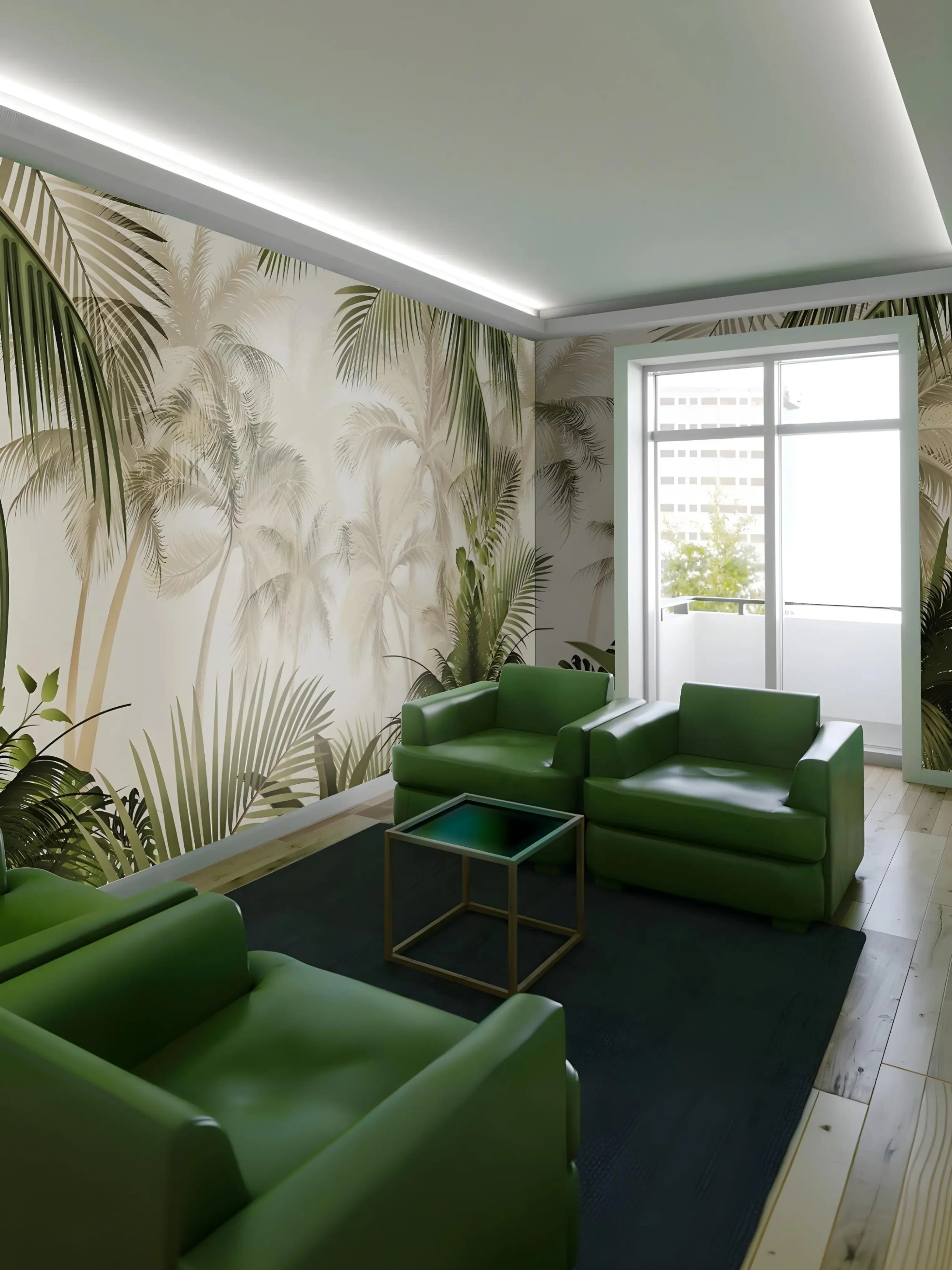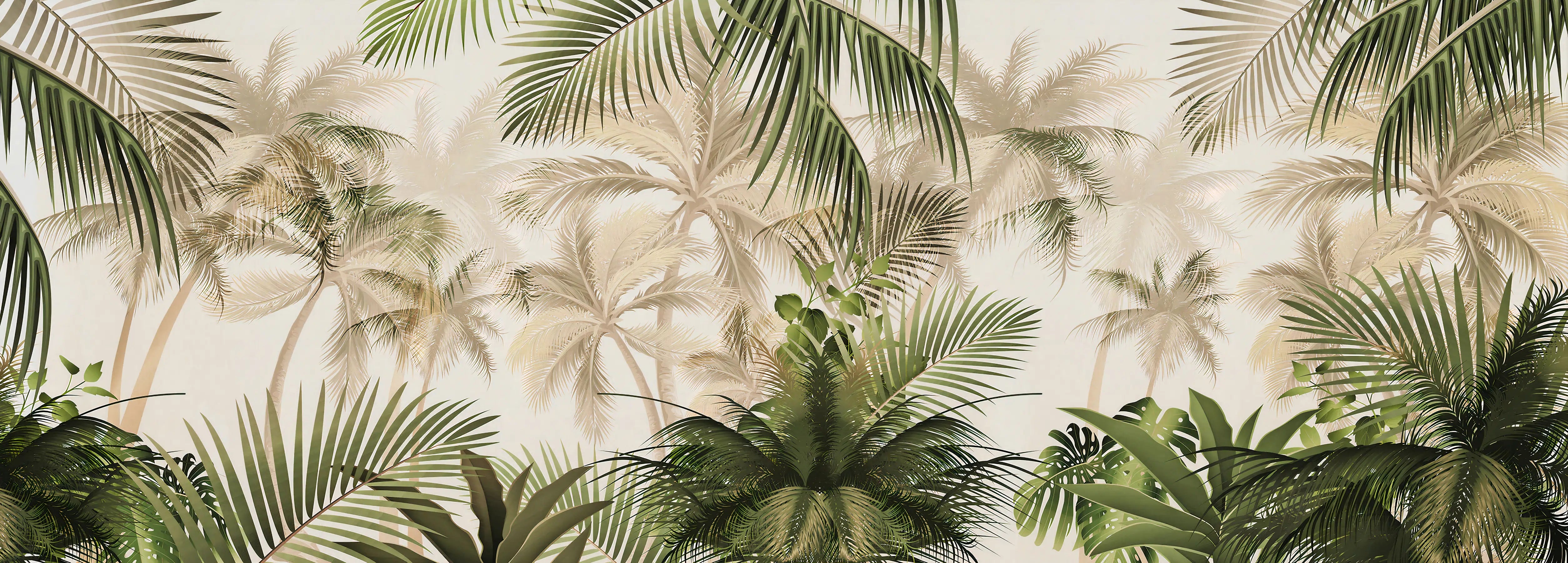 Com uma composição repleta de folhas tropicais em diferentes tons de verde e detalhes suaves em bege, este papel de parede cria um ambiente acolhedor e natural. O fundo claro contrasta com o verde vibrante das folhagens, oferecendo leveza visual e um toque sofisticado. Ideal para quem busca uma decoração botânica contemporânea, combina perfeitamente com espaços como salas, quartos e áreas de relaxamento, trazendo frescor e elegância com um estilo tropical refinado.
