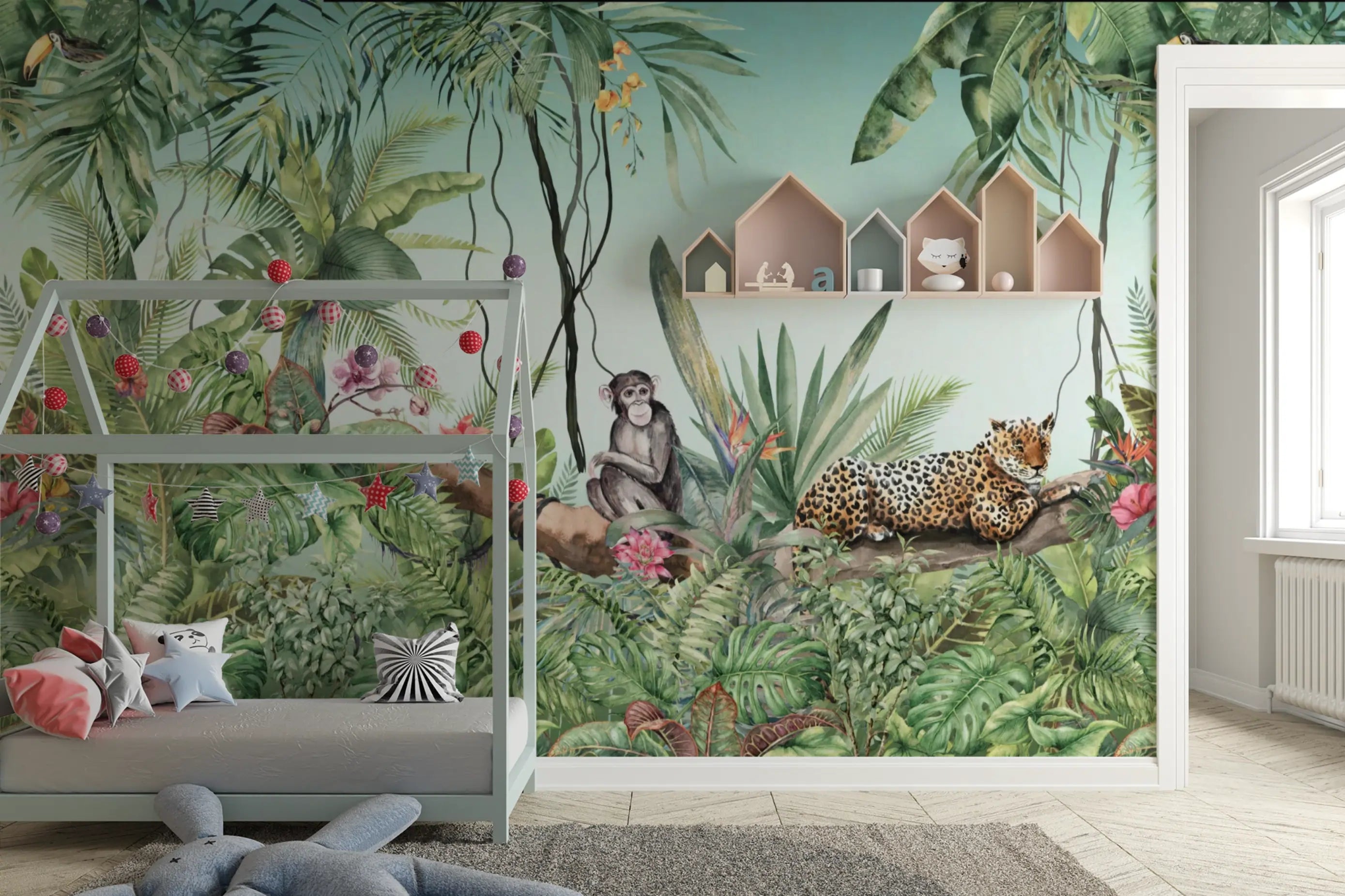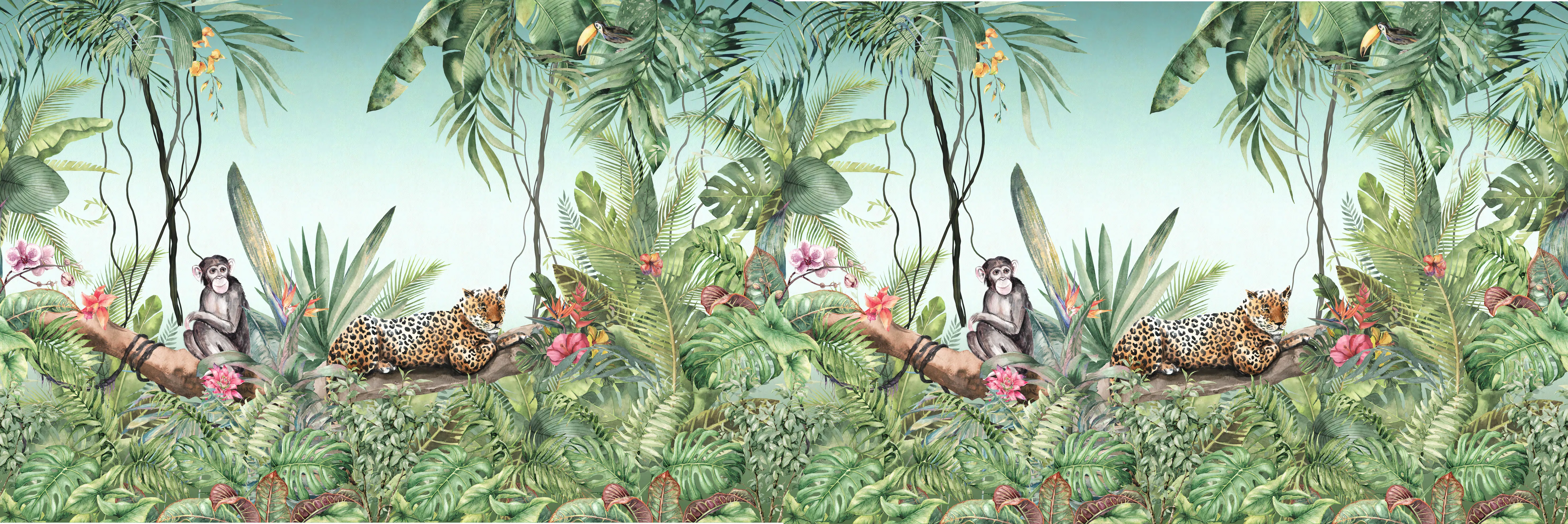 Transforme seu ambiente com o papel de parede "Selva Floresta". Este mural vibrante apresenta uma paisagem de floresta densa, com folhas verdes exuberantes e uma sensação natural de tranquilidade. Ideal para quem busca um toque rústico e acolhedor, seu design captura a beleza da natureza, criando um espaço fresco e cheio de vida. Disponível em material autocolante texturizado ou tradicional com cola, perfeito para qualquer tipo de projeto de decoração, seja em salas de estar, quartos ou banheiros.