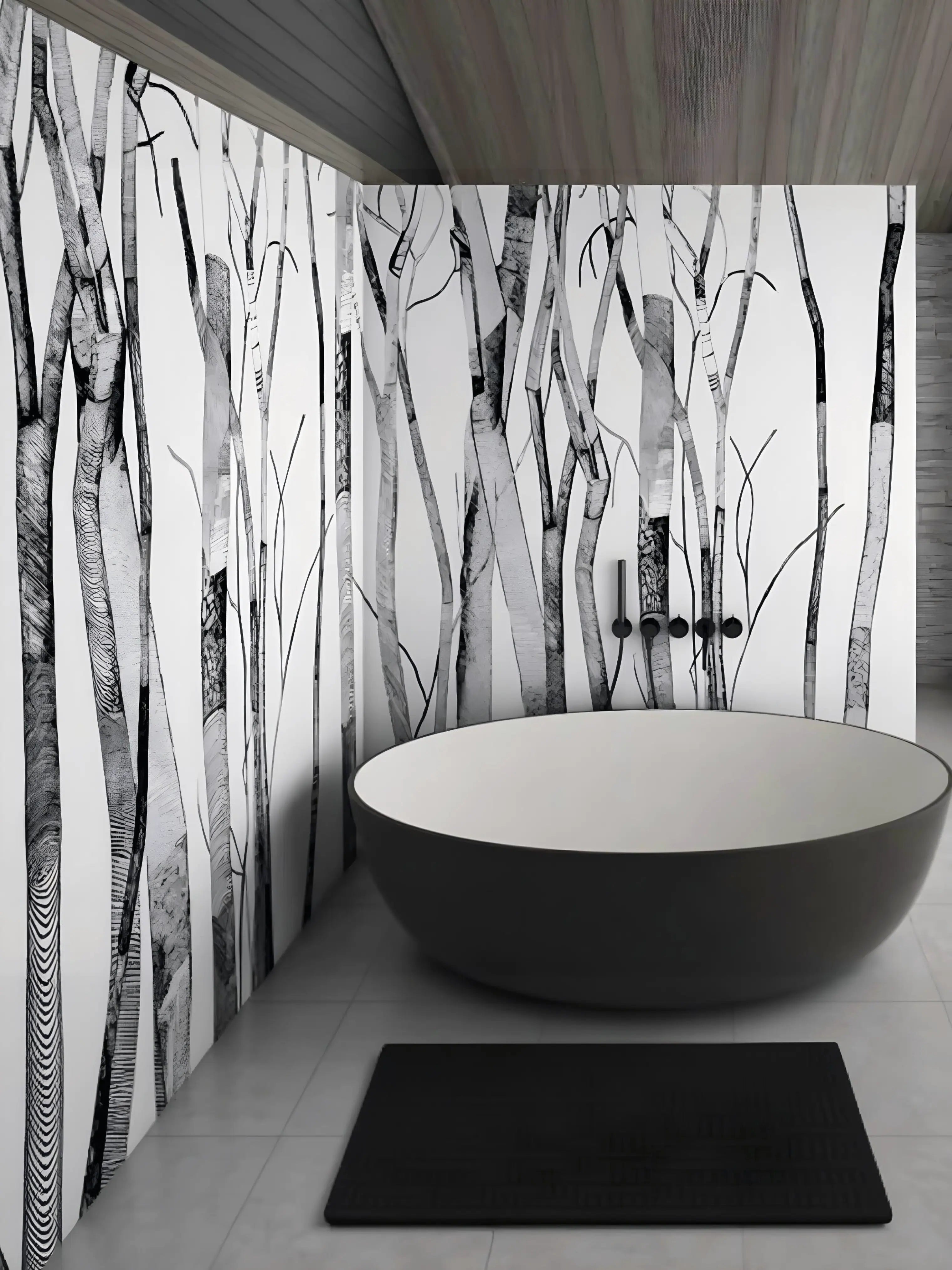 Este papel de parede traz uma composição artística de troncos verticais em preto e branco, criando um contraste elegante e moderno. A textura visual remete à rusticidade da natureza, enquanto a paleta monocromática confere um ar minimalista e contemporâneo ao ambiente. Ideal para quem busca uma decoração natural com estética refinada, perfeita para salas, halls, escritórios ou até quartos com atmosfera serena. O padrão vertical ajuda a alongar visualmente o espaço, trazendo leveza e sofisticação.