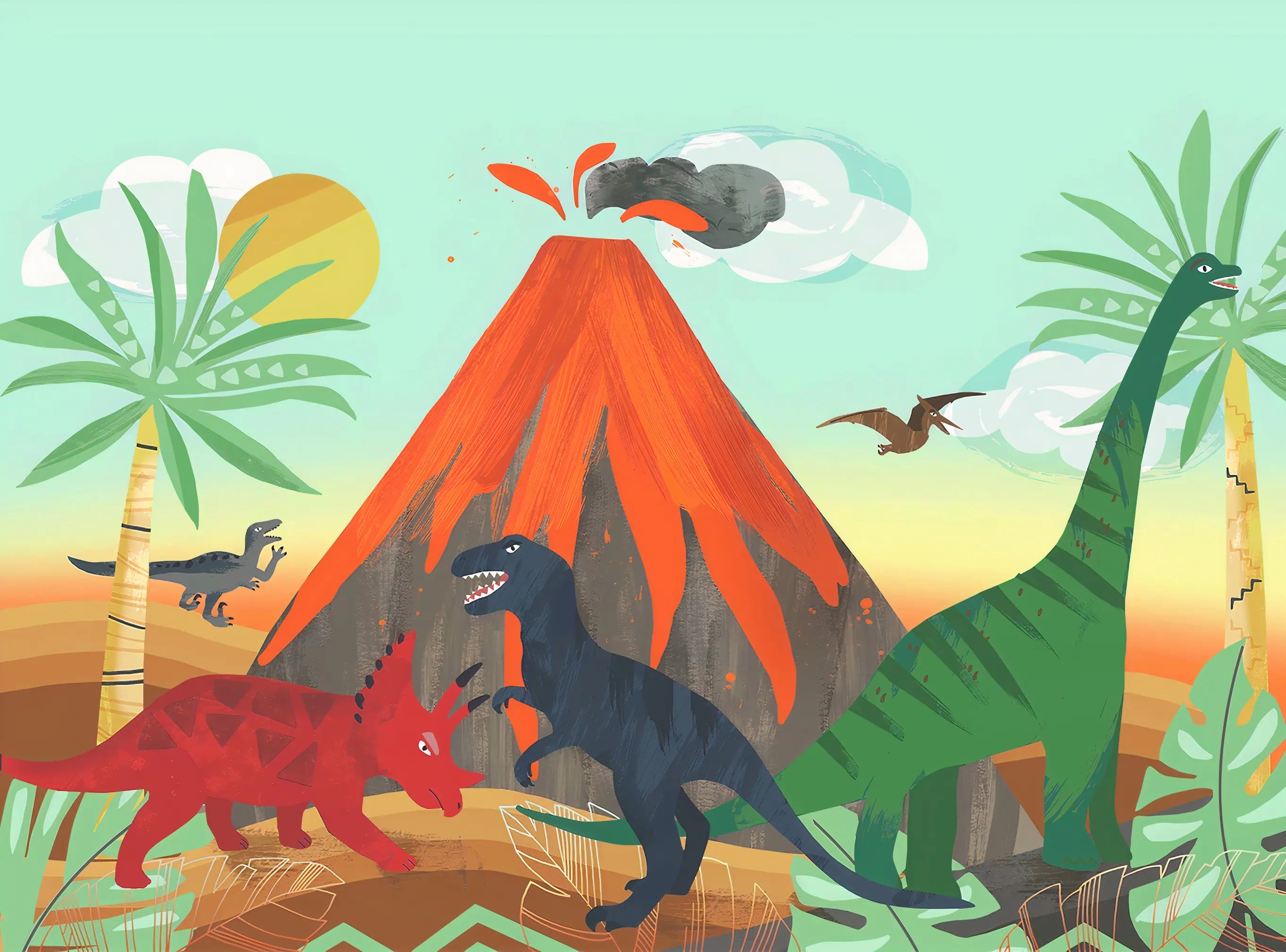 Desperte a imaginação com o Papel de Parede Vulcão e Dinossauros, uma cena empolgante que combina a majestade da natureza com a adrenalina da era dos dinossauros. Este mural captura a dramaticidade de um vulcão em erupção, com dinossauros dinâmicos explorando um ambiente pré-histórico vibrante. As cores quentes e intensas, como vermelhos, laranjas e amarelos, contrastam com o verde exuberante da vegetação, criando um cenário de aventura ideal para quartos infantis ou áreas temáticas de jogos. O design detalhado e as texturas visuais tornam este papel de parede uma verdadeira obra de arte, que transforma qualquer ambiente em um mundo de exploração e criatividade.